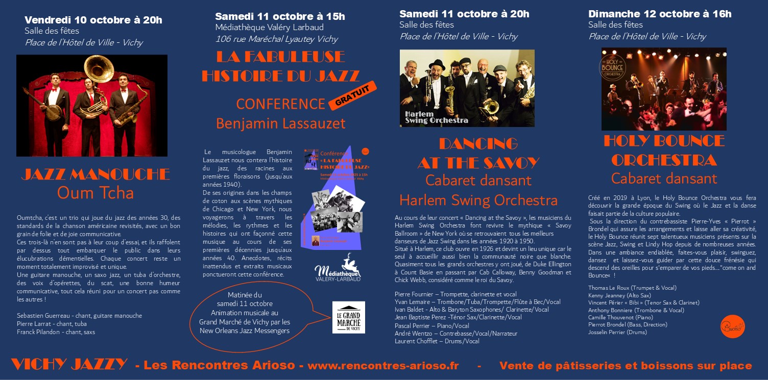 2ème édition du festival Vichy Jazzy 3 concerts les vendredi, samedi et dimanche à la salle des fêtes 1 conférence à la Médiathèque