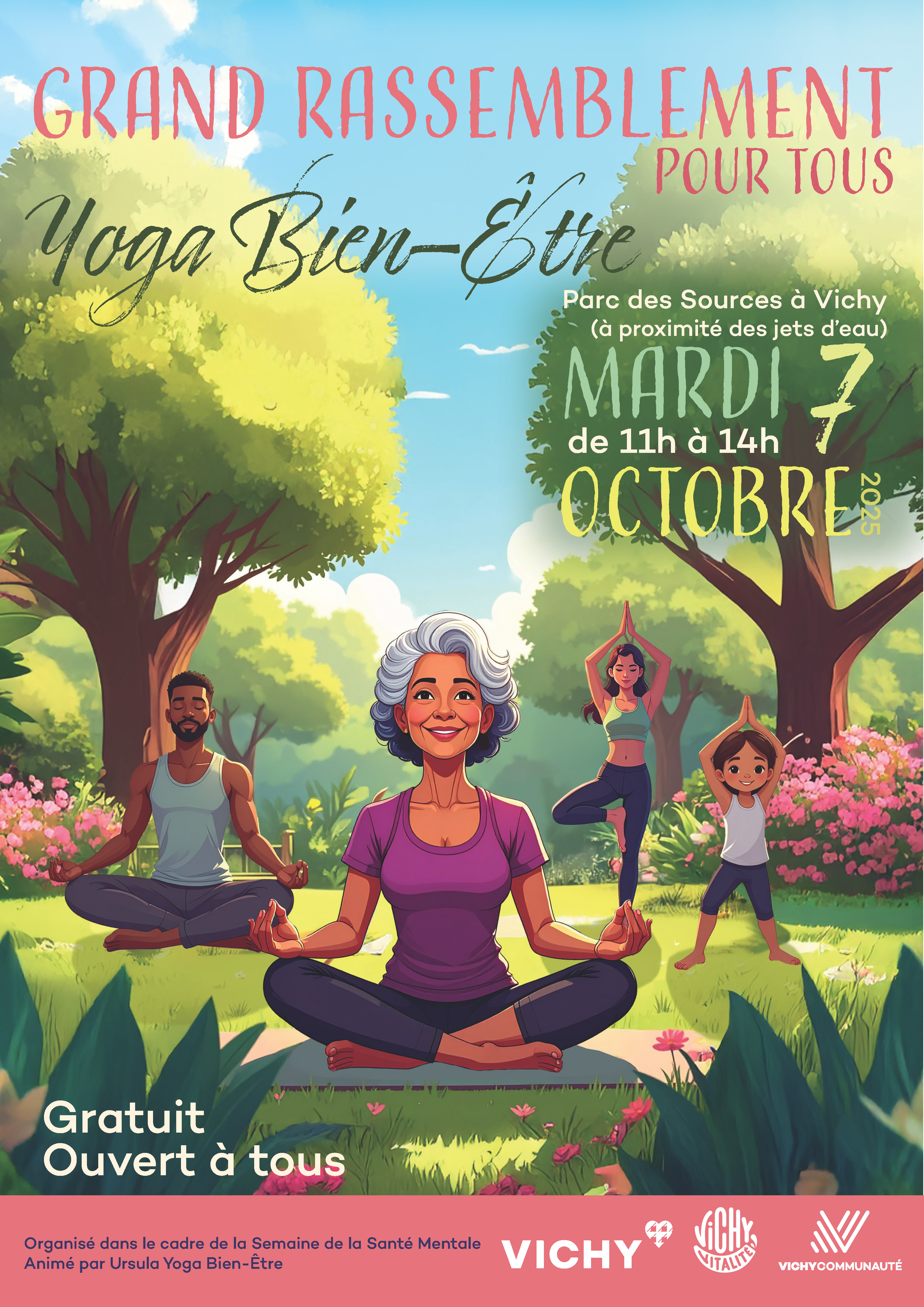La Ville de Vichy, à travers son programme Vichy Vitalité, vous invite à un grand rassemblement de yoga au Parc des Sources.