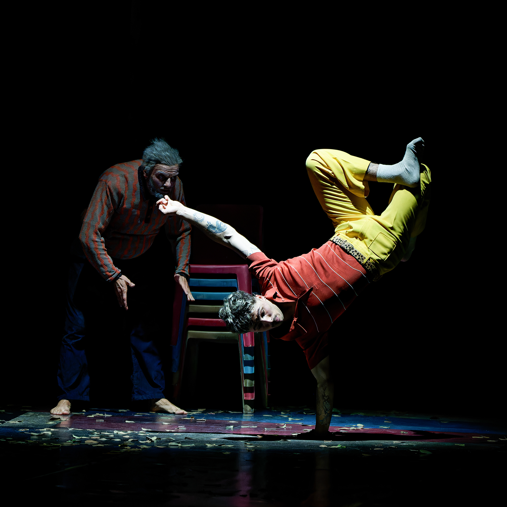 Comment le corps vieillit-il, comment change-t-il dans son énergie et sa gestuelle ? Cette contrainte de transformation bouleverse l’écriture chorégraphique et offre une nouvelle lecture du mouvement. Corps proéminents, gestes exagérés, personnalités marquées : les situations burlesques alternent avec une grande tendresse, portée par la musique électro aux accents sud-américains de Müller & Makaroff, cofondateurs de Gotan Project, qui insufflent une atmosphère de guinguette festive et poétique.