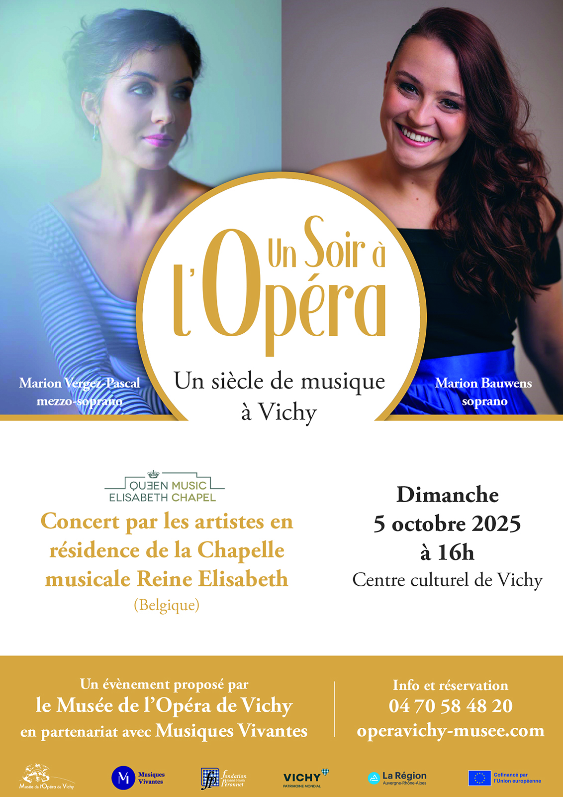 Dans le cadre de l’exposition "Faites vos jeux ! La vie musicale dans les casinos français », le Musée de l’Opéra de Vichy s’associe à Musiques Vivantes pour vous proposer un concert exceptionnel par des artistes en résidence à la Chapelle musicale Reine Elisabeth (Belgique).