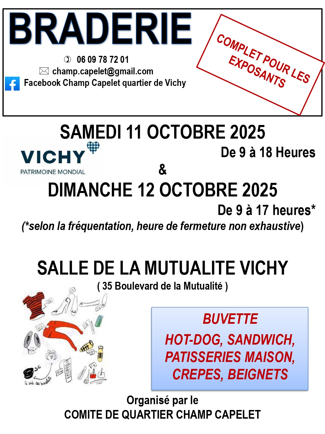 Le comté de quartier organise une brocante à la maison de la mutualité. Restauration sur place .