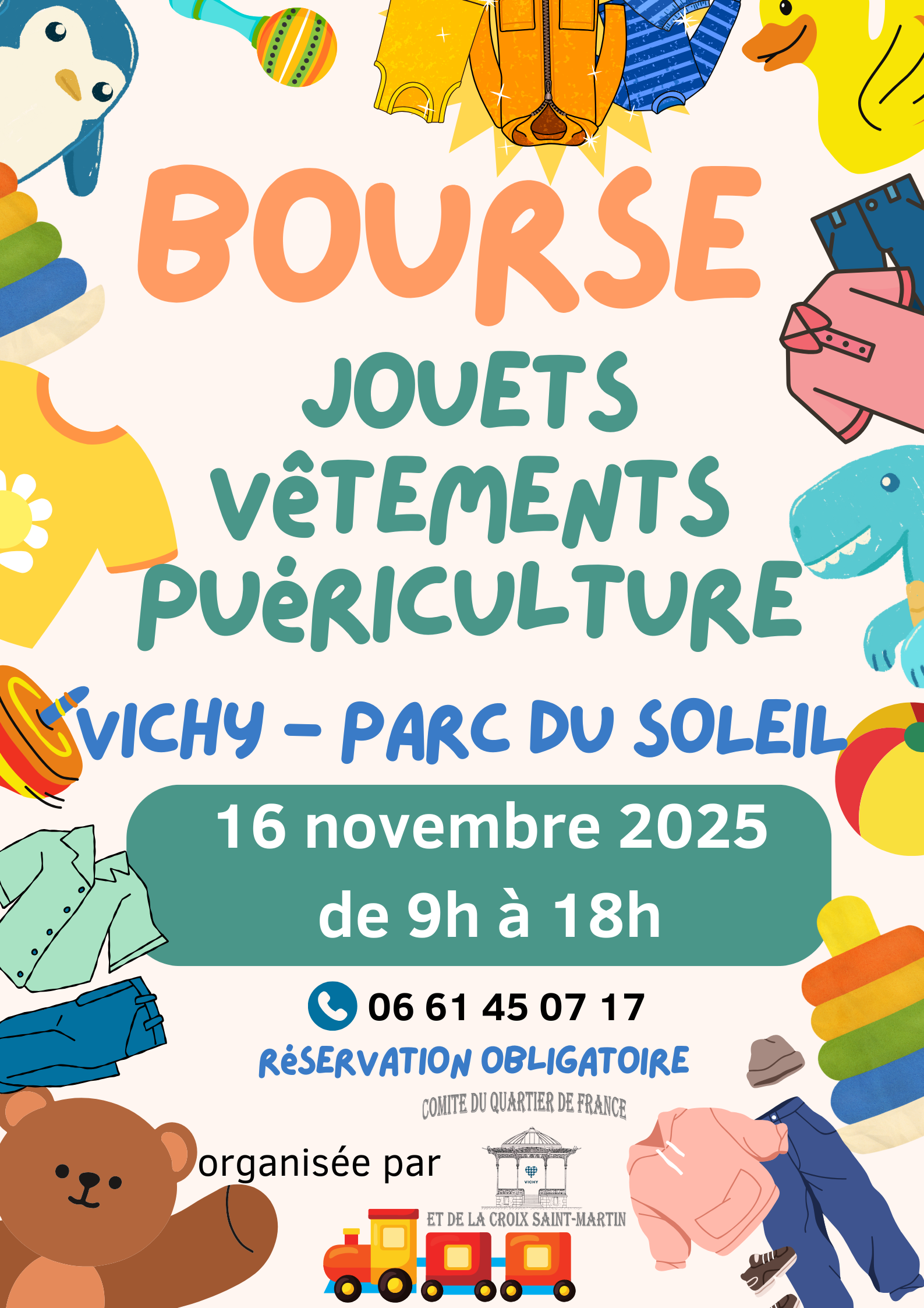 La Bourse aux jouets-vêtements-puériculture se déroulera au Parc du Soleil à Vichy.