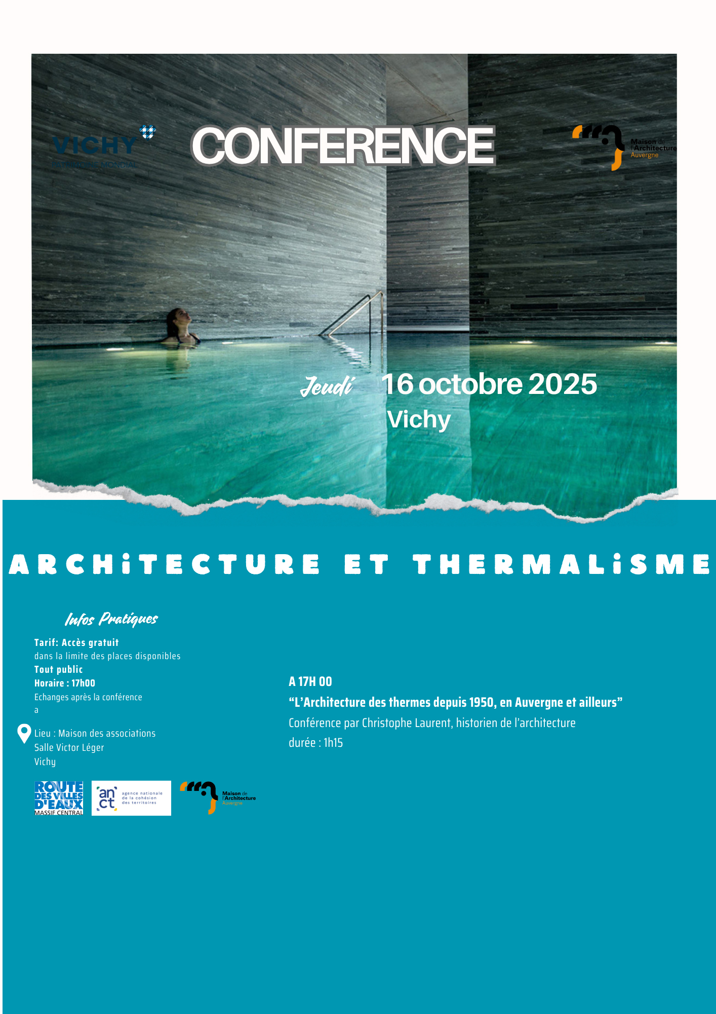 Des thermes qui ne coulent pas de source: le thermalisme antique à Vichy et à Cusset, par L. AUGUSTIN ROLAND et G. ROCQUE, archéologues. "L'Architecture des thermes depuis 1950, en Auvergne et ailleurs" par Christophe LAURENT, historien de l'architecture