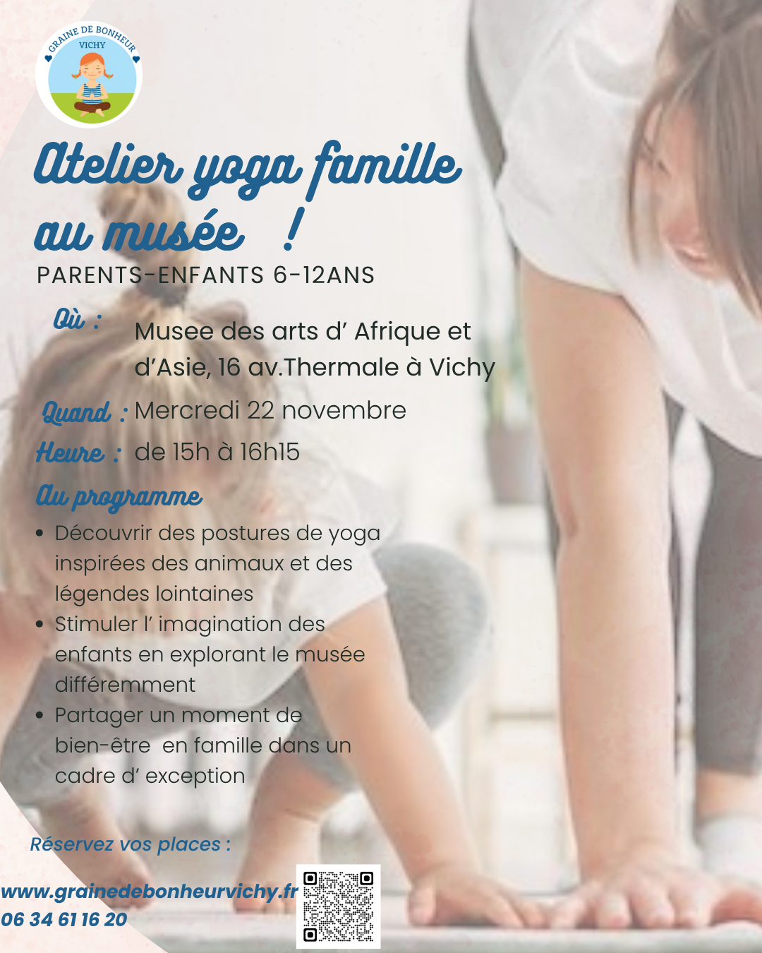NOUVEAU ! Éveillez vos sens : Atelier Yoga en Famille au coeur du musée ! Atelier animé par Sabrina, enseignante de yoga et sophrologue enfants et femmes enceintes à Vichy