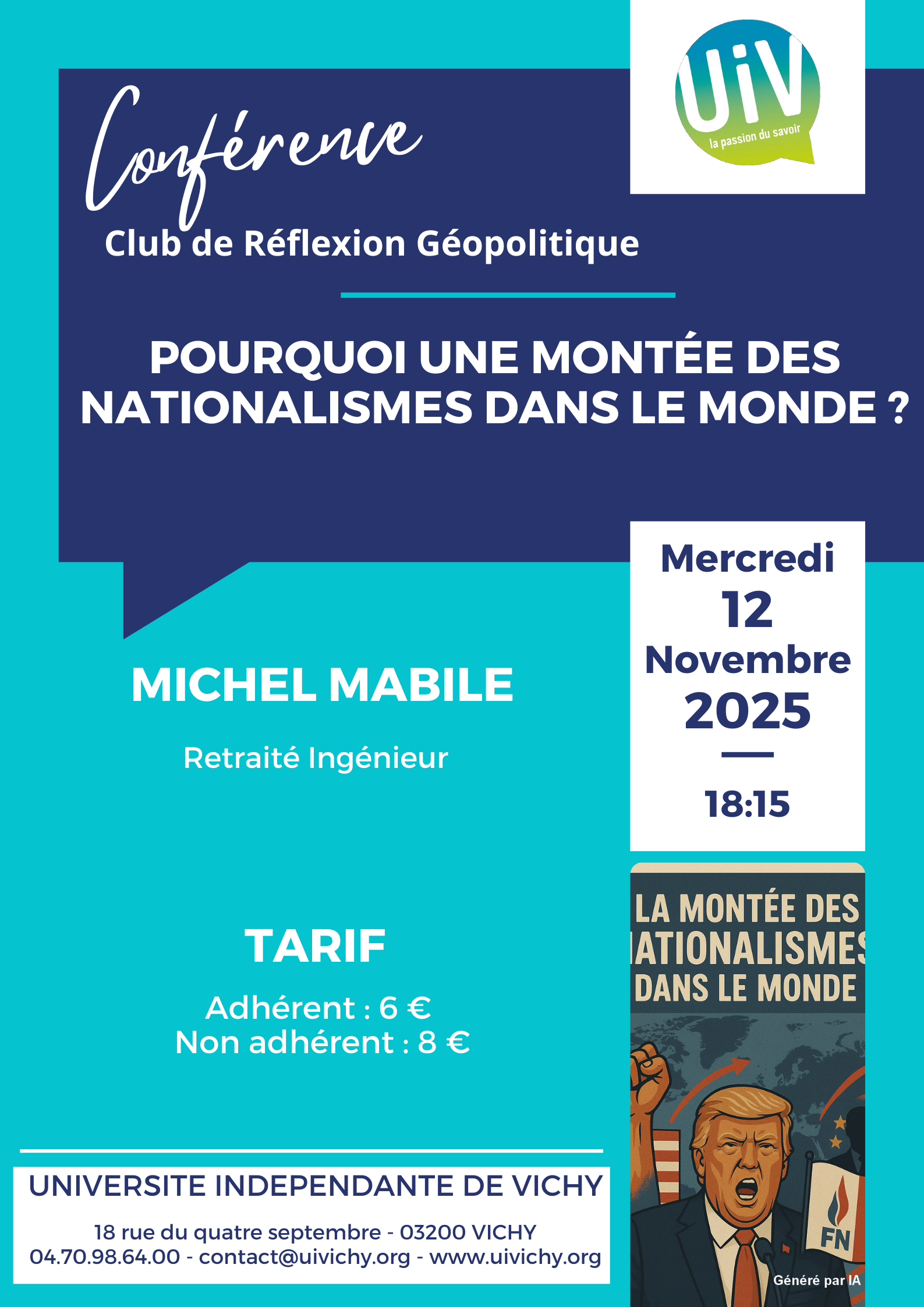 Les élections dans les pays démocratiques portent au pouvoir des partis nationalistes. L’exemple le plus frappant est l’élection de D. Trump aux USA. La conférence a pour objet de tenter d’expliquer les raisons de ce développement qui semble accompagner un basculement géopolitique majeur dans le monde et de tirer les conséquences de ces changements aussi bien en Europe que dans le reste du monde.