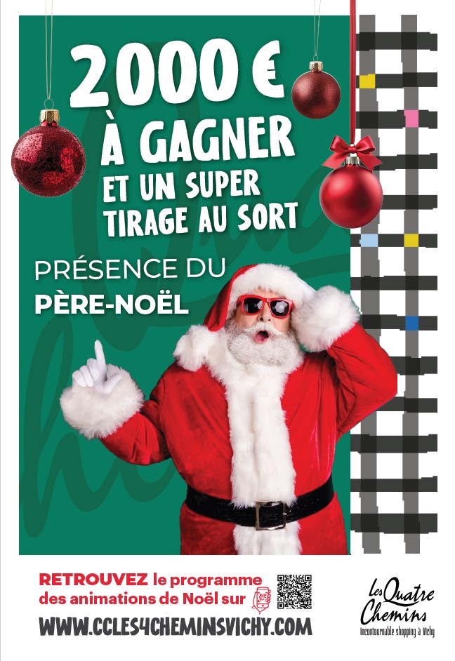 ✨ Noël magique au Centre Commercial Les Quatre Chemins à Vichy ! ✨ Cette année encore, la magie de Noël s’invite aux Quatre Chemins ! Venez vivre des moments féériques en famille, rencontrer le Père Noël, et tenter de remporter de superbes cadeaux