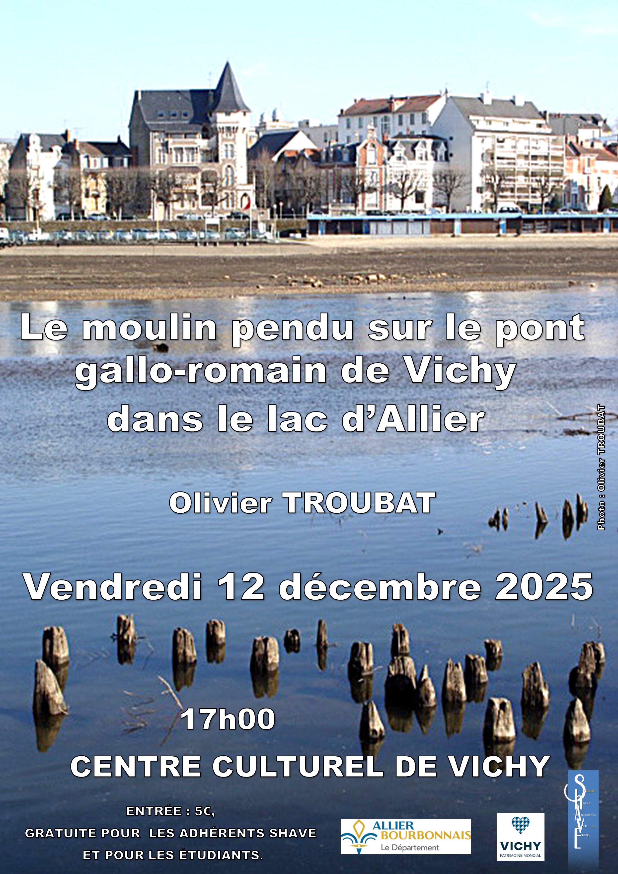 Conférence SHAVE. Le moulin pendu sur le pont gallo-romain de Vichy dans le lac d'Allier, par Olivier TROUBAT.