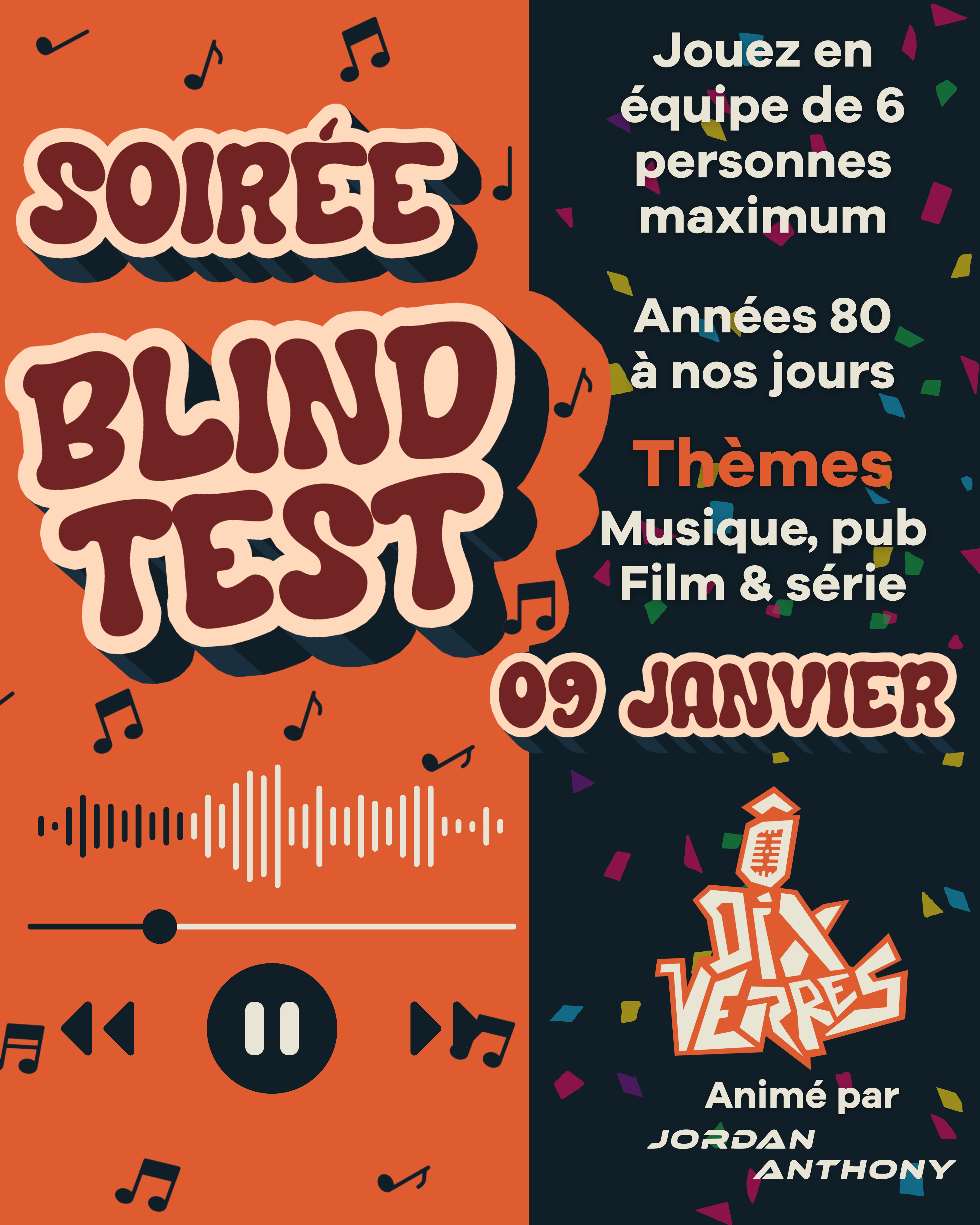 1ère soirée Blind Test et DJ chez Ô Dix Verres. Inscription gratuite pour cette 1ére.