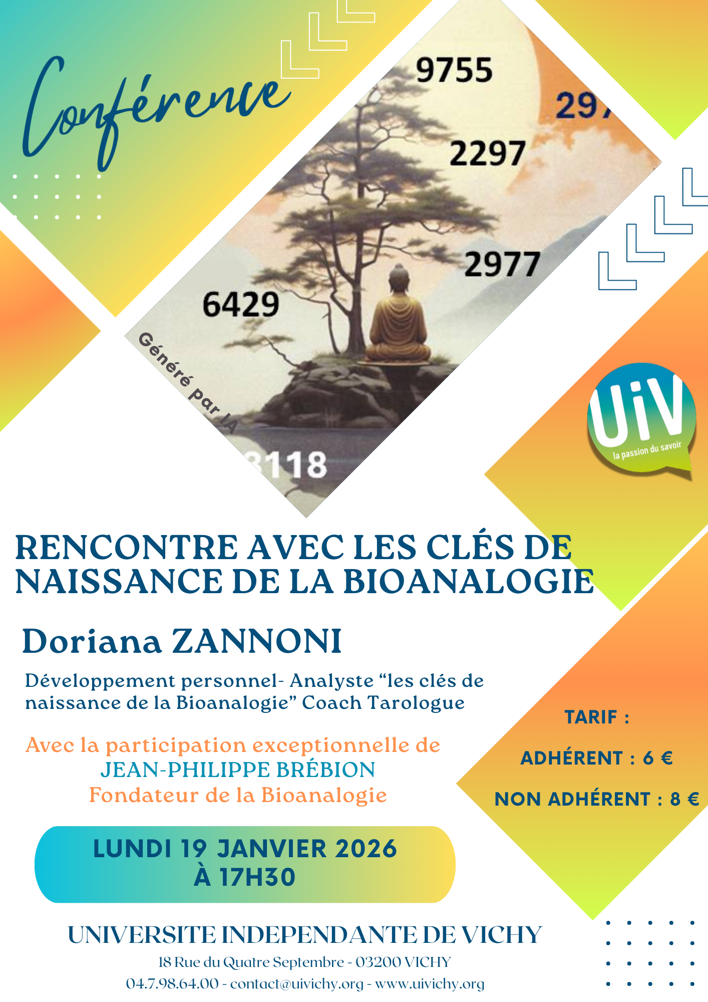 Conférence proposée par Doriana Zannoni, Analyste "les clés de naissance de la bioanalogie", coach tarologue. Avec la participation exceptionnelle de Jean-Philippe Brébion, fondateur de la bioanalogie.