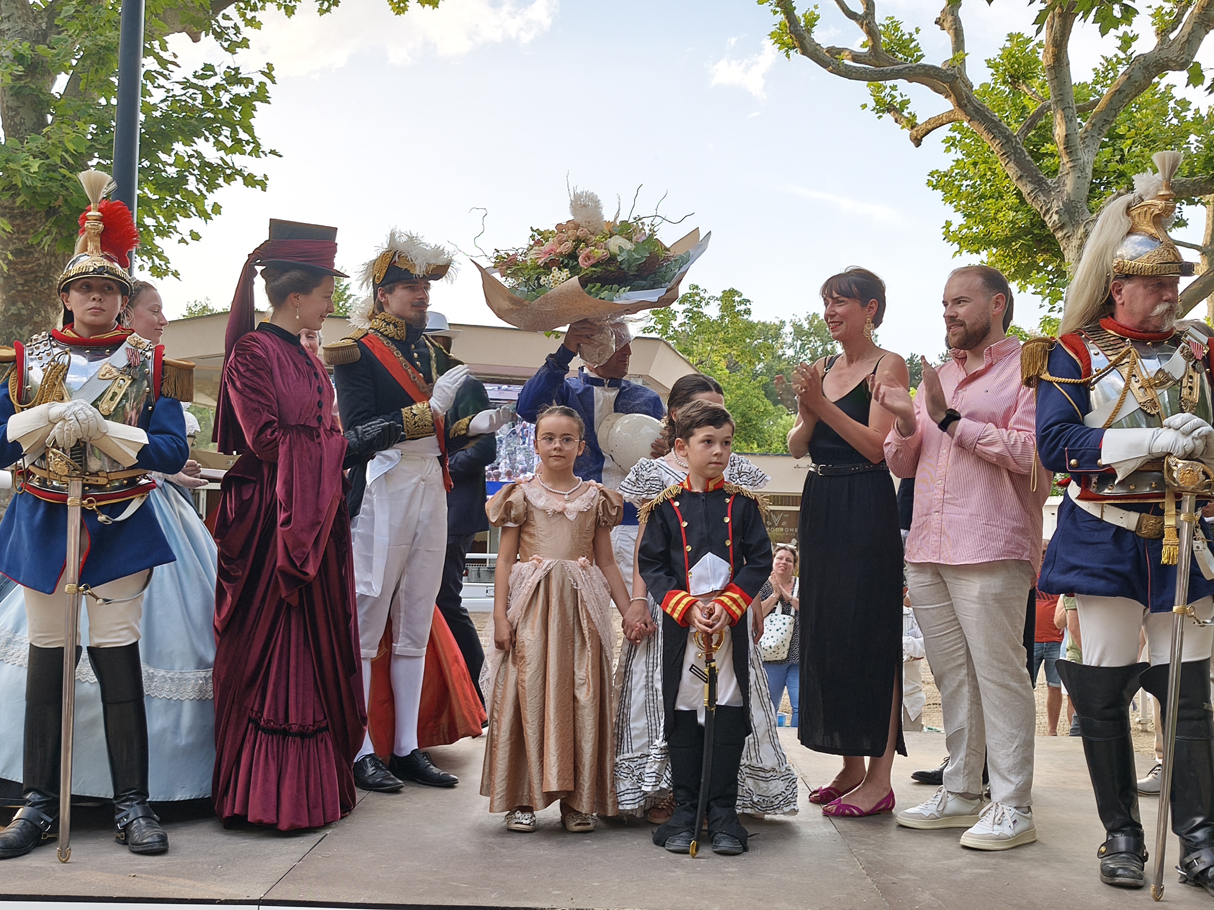 Nous vous proposerons ce samedi soir, en partenariat avec la Société des Courses de Vichy, une immersion hors du temps. Plongez dans l'effervescence du Second Empire le temps d'une soirée rythmée par la grâce des danseurs costumés, le pas des amazones et l'élégance des calèches. Entre deux sonneries de trompes de chasse et la remise du prestigieux Prix Napoléon III, laissez-vous transporter par une atmosphère historique unique, couronnée par un grand feu d'artifice en clôture de soirée.