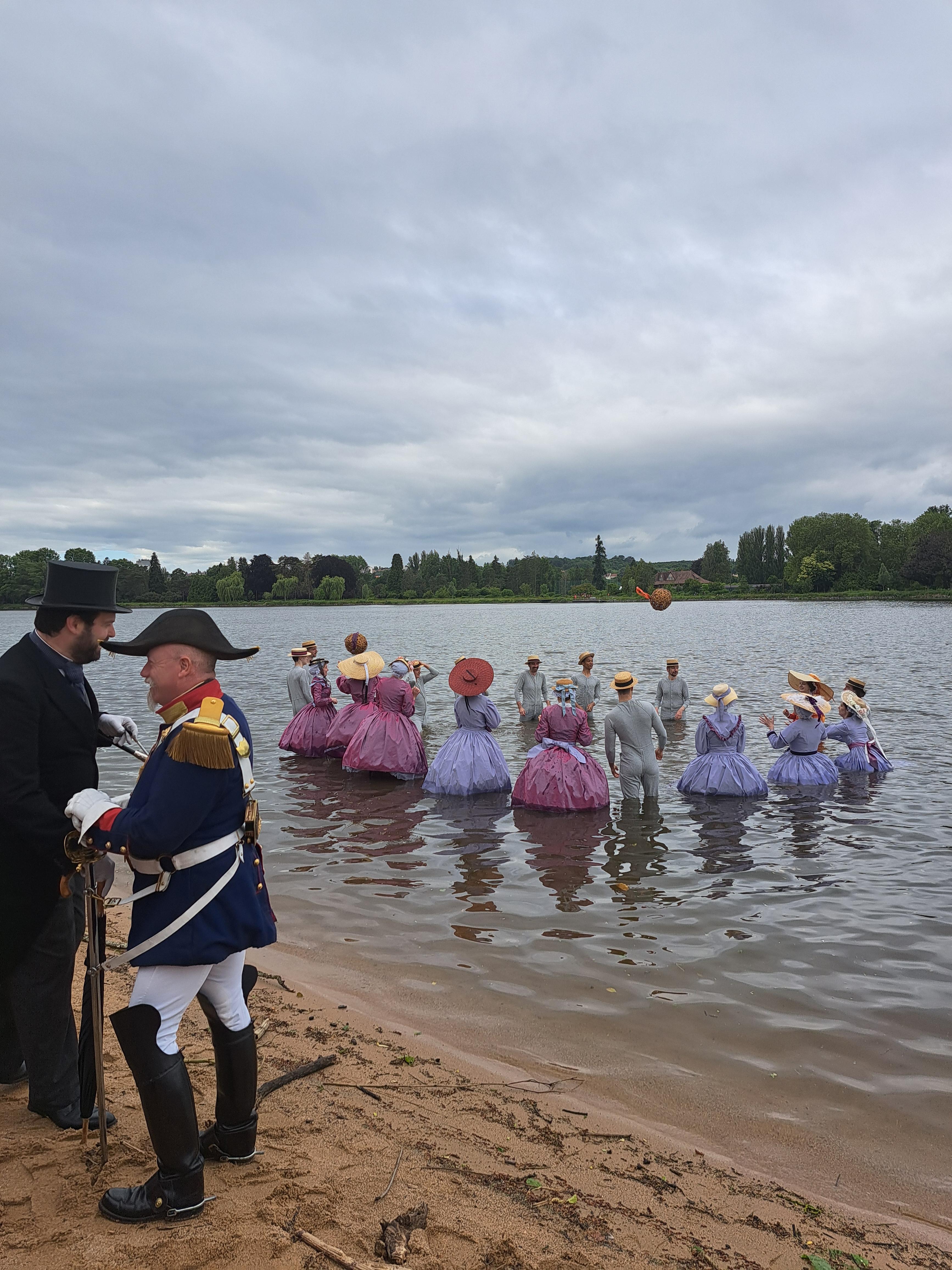 L’Impératrice, accompagnée des dames les plus courageuses de sa Cour et de quelques maîtres-nageurs pratique une de ses activités les plus « dissimulées » au public : la natation en costume de bain… Les écrits sont nombreux mais aucune gravure n’en a jamais été autorisée…Ce week-end venez en apprécier une reconstitution unique !
